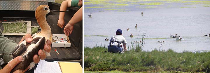 The tracking of migratory birds with the use of satellites is possible with the use of platform transmitter terminals (PTT). The PTTs transmit basic data about their functioning that is picked up by satellites and thus provides the positions of the PTT and the bird carrying it. These allow for the identification of migration routes, timing and speed of migration, stopover areas, and wintering locations for birds (e.g. Kooyman 2002, Kessler et al. 2013). PTTs have a 2-5 year lifespan and are capable of transmitting data instantaneously to satellites that can then be retrieved from a desktop computer. Given recent advancements in this technology and the need to increase understanding of migration ecology for American Avocets, we began this study during the summer of 2014. This study will allow for an initial assessment of the feasibility of using PTT technology to increase understanding of migration ecology and promote conservation and management of this important shorebird. Specific objectives and methods are outlined below.